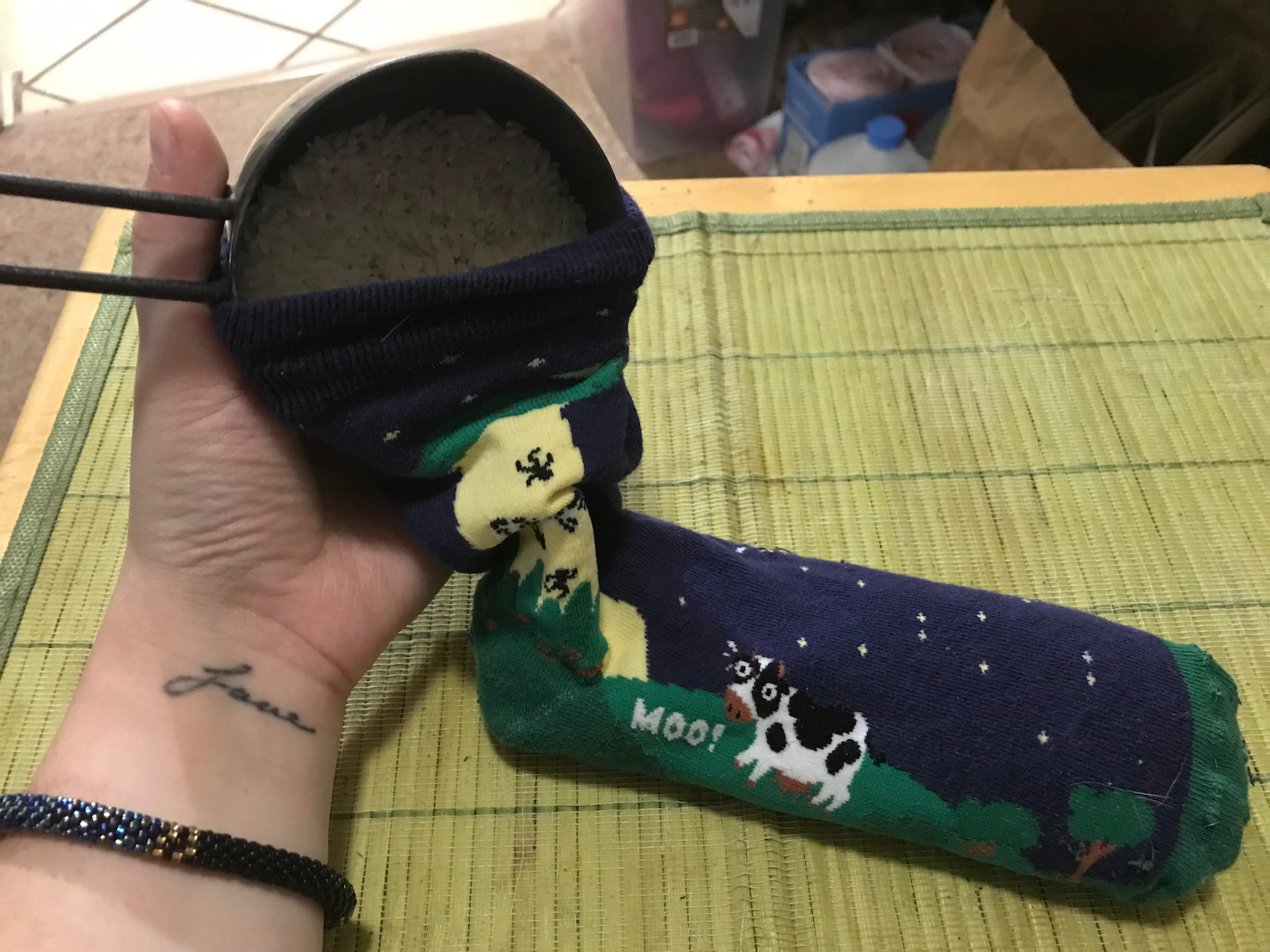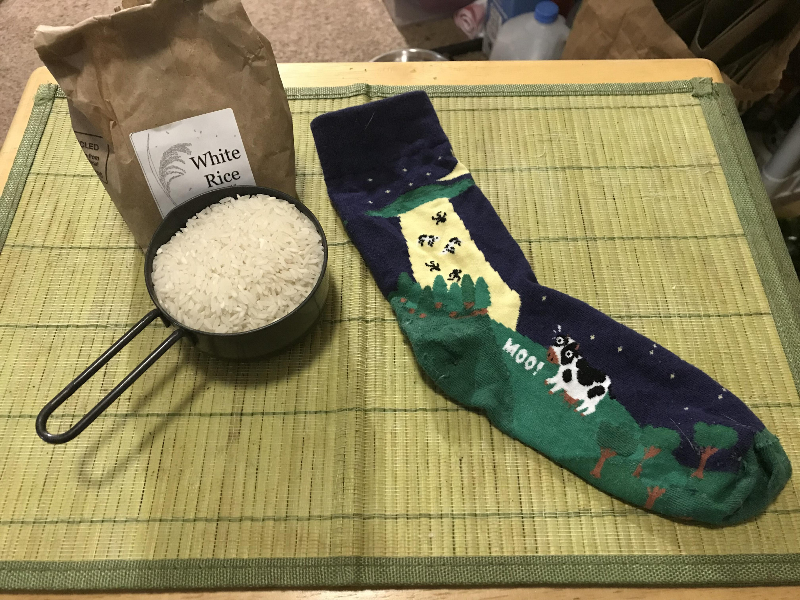 • A clean cotton sock (Pick a cute pattern! It adds a personal touch to your heating pad.)